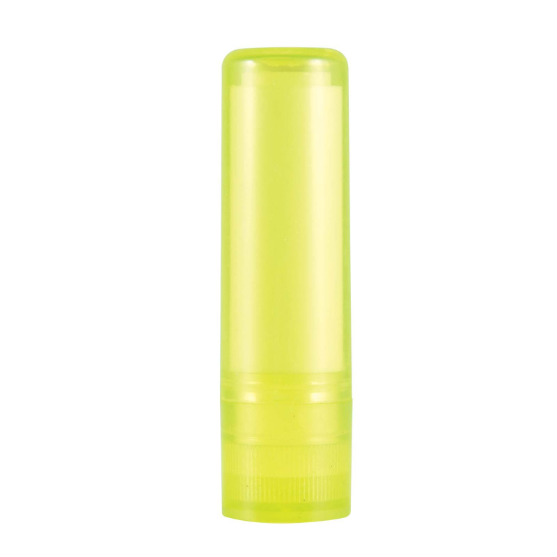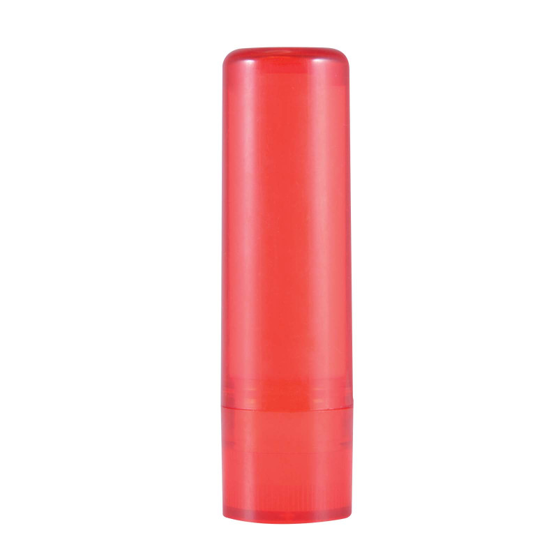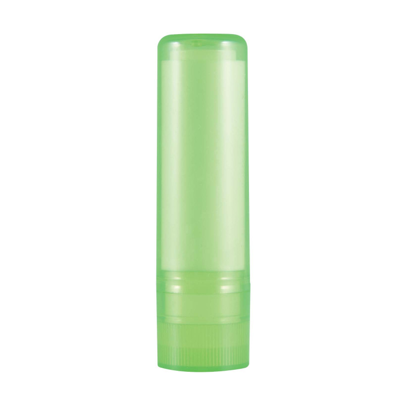 4.5g vanilla flavored and SPF15 sunscreen moisturizing lip balm in a frosted translucent plastic tube, twist action, meets FDA requirements, fits in pocket or purse.