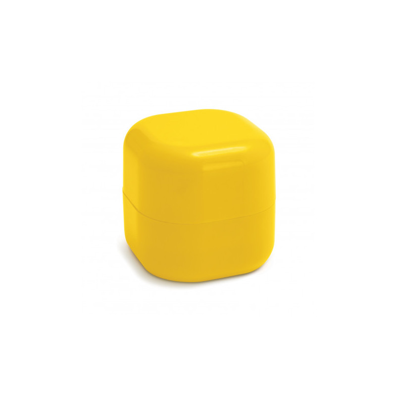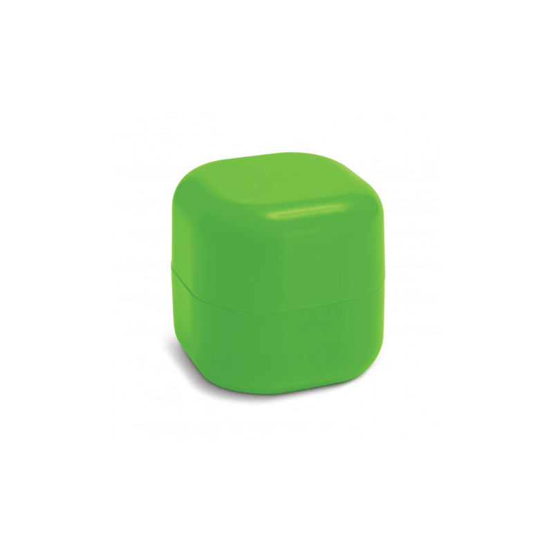 Nourishing lip balm with soothing vanilla to moisturise dry lips. Shiny UV plated square container with a 6.5g lip balm ball inside. Twist lock cap. Ingredients label on base.