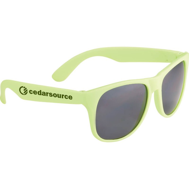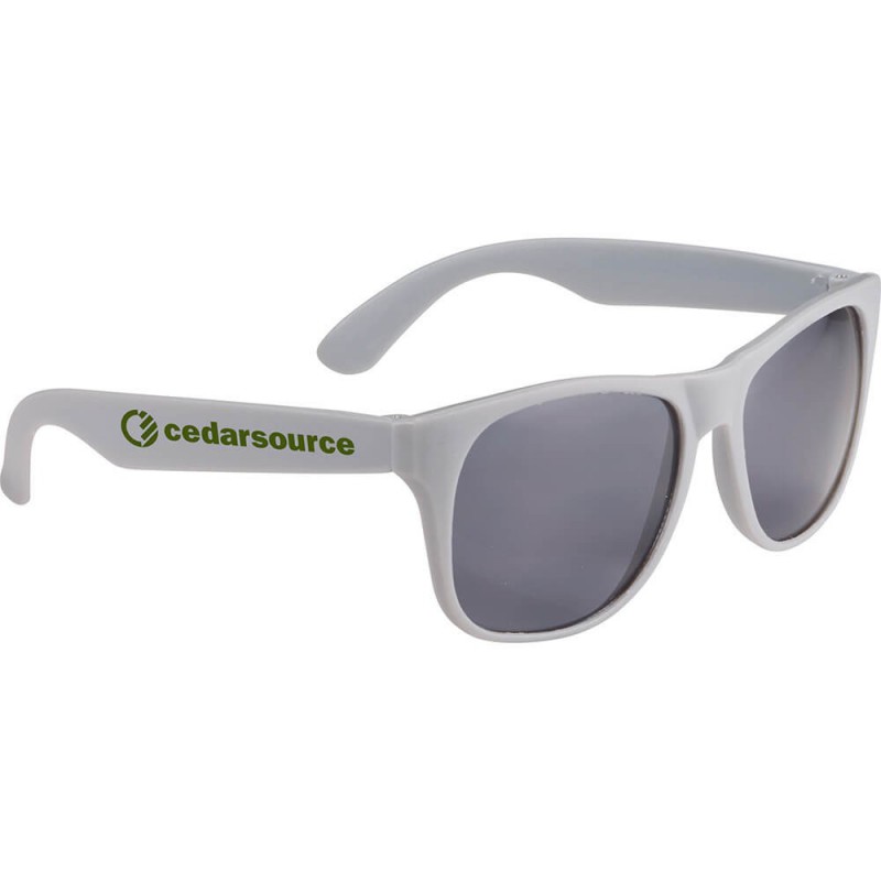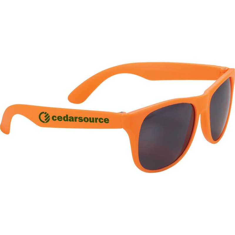 Classic style sunglasses with tinted lenses rated to UV400 providing UVA and UVB protection. Strong polycarbonate frames and lenses are durable and offer all day comfort. Available in a great range of corporate colours - mix and match for your next event. Comply with Australian standards AS/NZS1067:2016 parts 1 & 2.