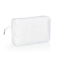 Small cosmetic bag which is manufactured from soft transparent plastic. It has a black zippered closure with black stitching and a polyester lining which can be branded in full colour on both sides at no extra cost. A production lead time of 20 working days applies to this product by air freight and larger orders can be sea freighted on request to reduce...