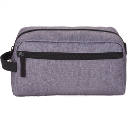 Toiletry bag with a carry handle and a smart shiny chrome zip. It is manufactured from poly-canvas with an on-trend heather style finish.