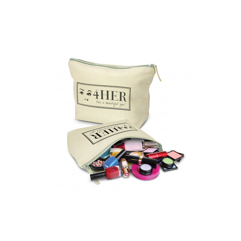 Small cosmetic bag with a zippered closure which is manufactured from robust 400gsm unbleached natural cotton canvas.