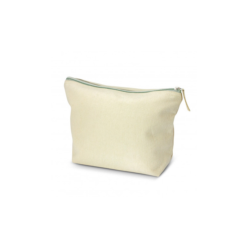 Medium size cosmetic bag with a zippered closure which is manufactured from robust 400gsm unbleached natural cotton canvas.