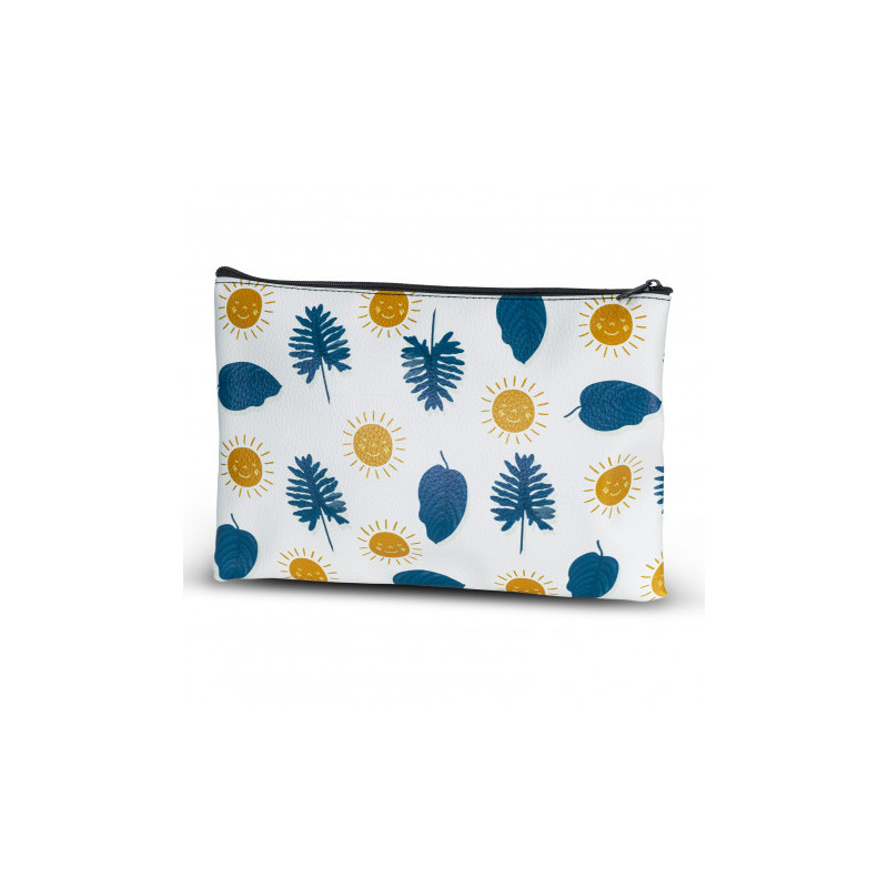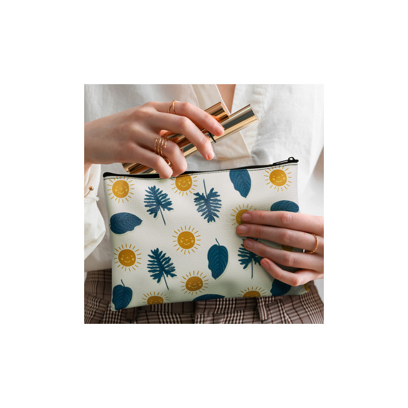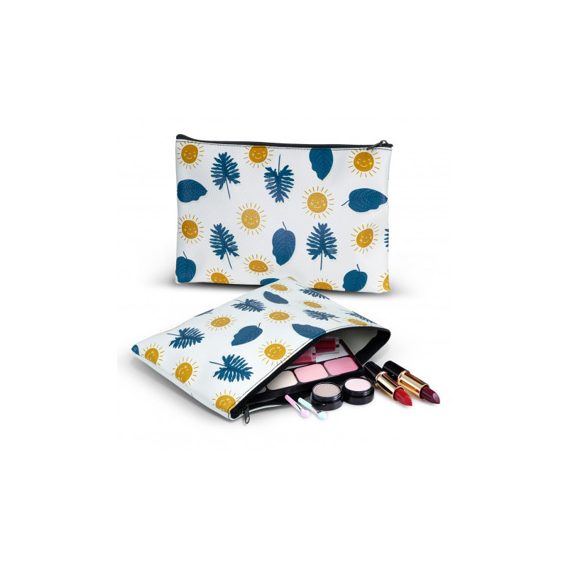 Small cosmetic bag manufactured from leather look PU and is branded in full colour on both sides with no extra cost. Flora has a black zipper and the stitching matches the zip colour. A production lead time of 25 working days applies to this product.