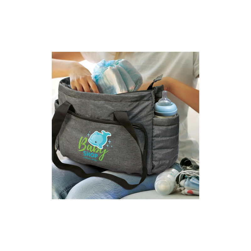 At our company, we offer a range of conference merchandise and products, including the Kinder Baby Bag. The minimum order quantities (MOQs) vary depending on the product and how it's decorated—whether printed or otherwise.