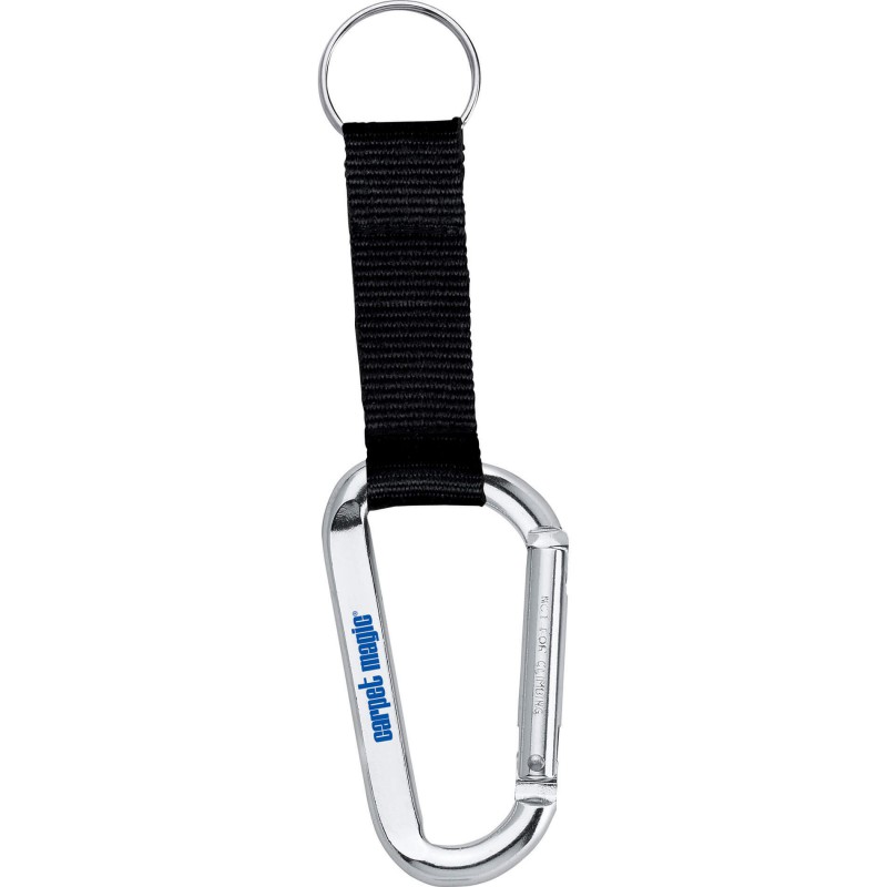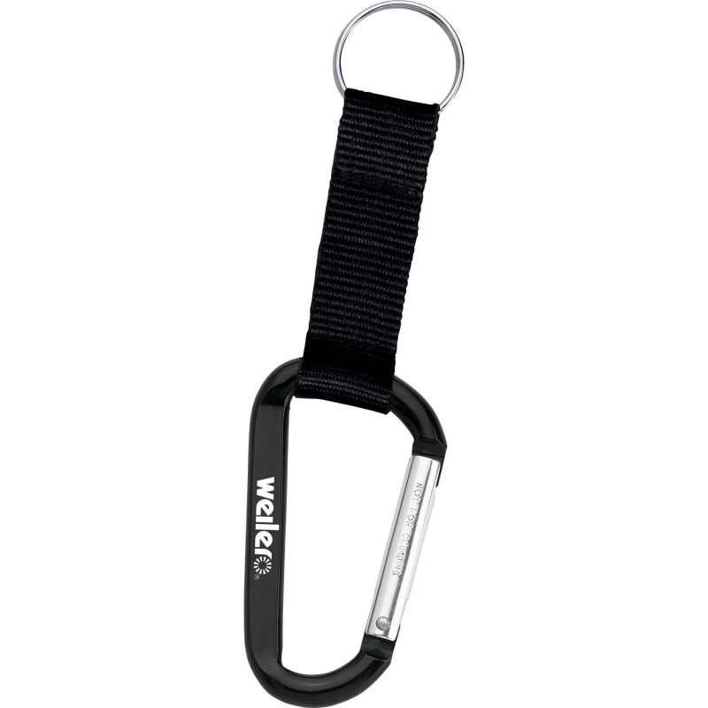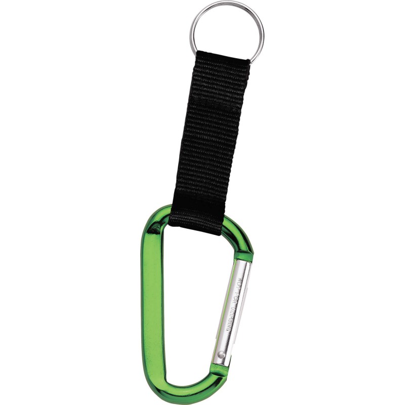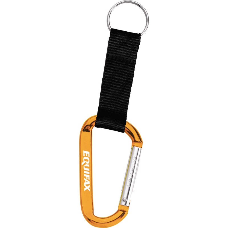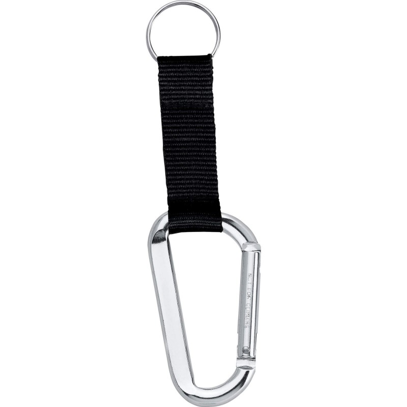 6mm carabiner. Metal split key ring. Laser engraving recommended. Not intended for climbing. Engraves white.