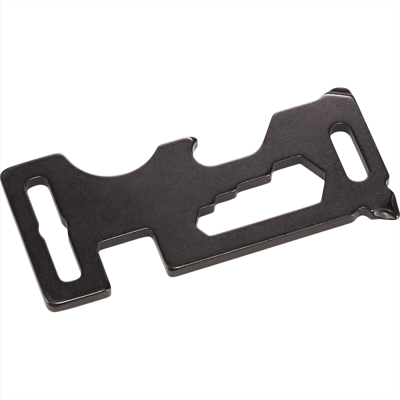 Stainless steel multi-tool that is credit card size and slim enough to fit in a wallet. It features a can opener, a knife edge, a screwdriver, a ruler, a two-position wrench, a four-position wrench, a butterfly wrench, a saw blade and a direction ancillary indicator for navigation. Multi-Tool Card can be used anywhere and is ideal for outdoor activities....