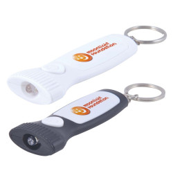 A cost effective torch keyring, fashionable design, has a white LED light with a button switch, being a popular promotional item for many years. Ideal for conference and trade show give-away.