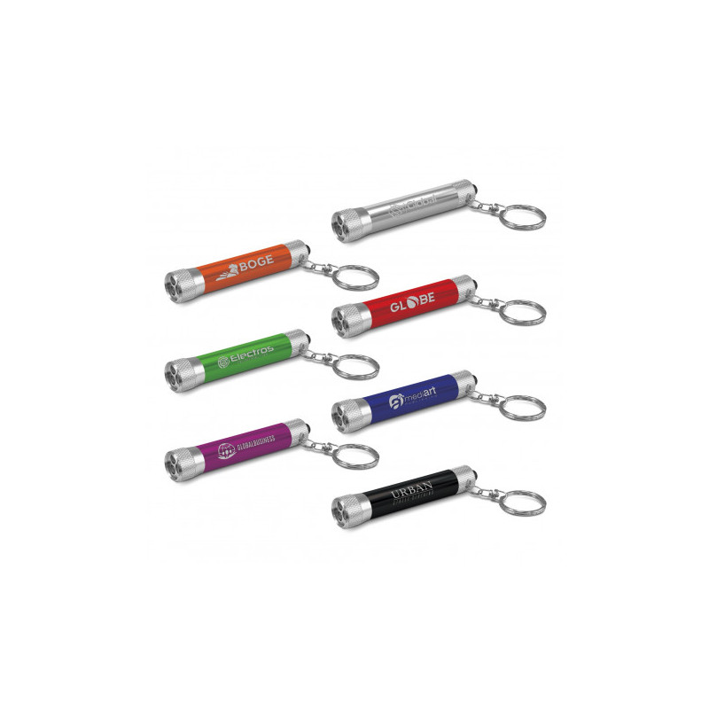 A cost effective torch keyring, fashionable design, has a white LED light with a button switch, being a popular promotional item for many years. Ideal for conference and trade show give-away.