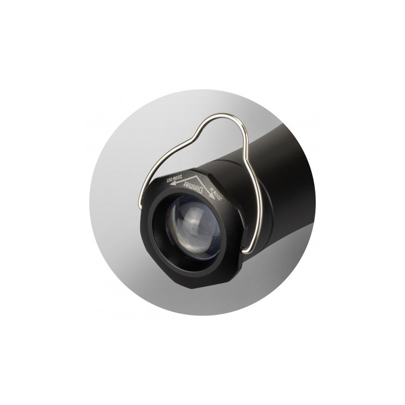 Large 10W metal torch with an adjustable beam which is fitted with Cree brand ultra-bright LEDs. It has a wrist strap and uses three C batteries which are included. The torch laser engraves to an oxidised white colour and it is presented in a printed Swiss Peak gift box.