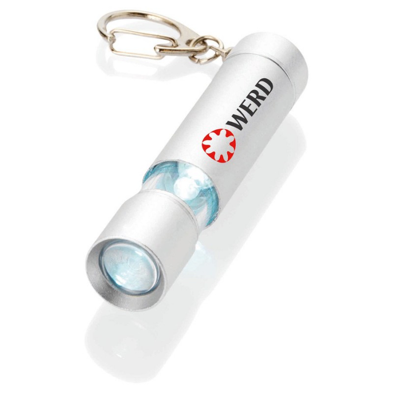 Aluminium mini torch with a handy key ring and three powerful LEDs which produce bright white light. It uses one AAA battery which is included and it laser engraves to an oxidised white colour.