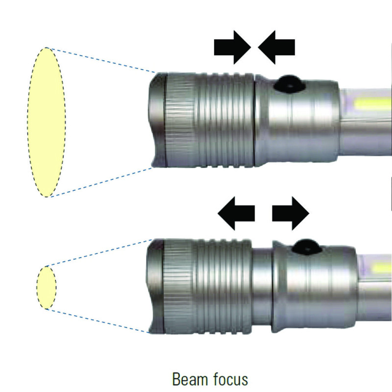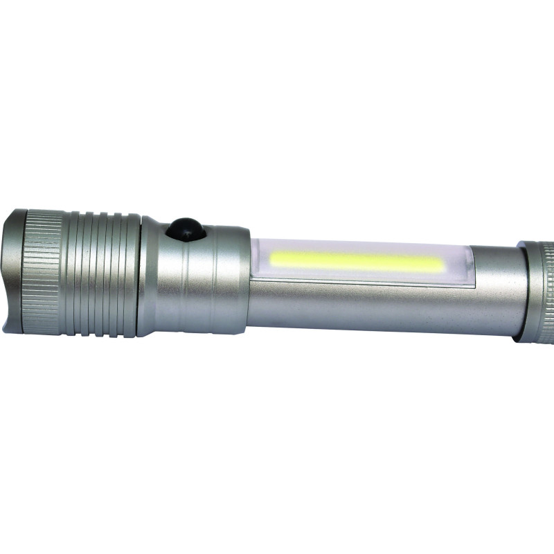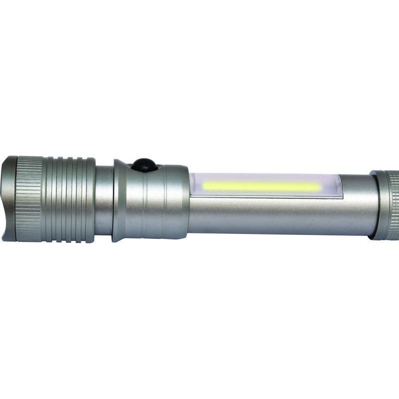 The COB and Torch with Magnetic is an essential tool for any job. The adjustable base allows for the COB light (100 lumens) or torch light (30 lumens) to be moved in the desired angle. The magnet extends to pick up small metal objects such as screws that may be out of reach. 3 AAA Batteries included.