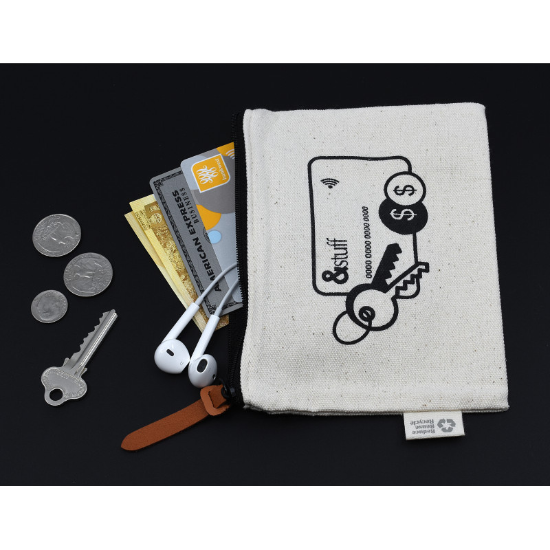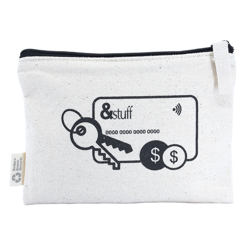 At our company, we offer a range of conference merchandise and products, including the Calico Card & Key Pouch 12.5cm x 17cm. The minimum order quantities (MOQs) vary depending on the product and how it's decorated—whether printed or otherwise.