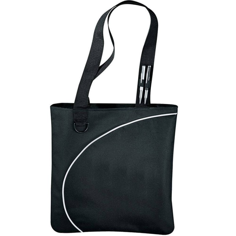 Refined tote bag with a rounded gusset and a sewn in base for added capacity. It is manufactured from tough 600D polyester and has a slip front pocket, a secure zippered top closure and long woven carry handles so it can be comfortably carried on a shoulder.