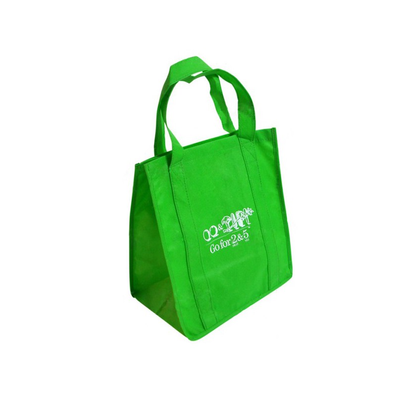 Open main compartment. Die-cut handle. Heat-sealed construction with slim design. Reusable and a great alternative to plastic bags or for tradeshows and conventions.