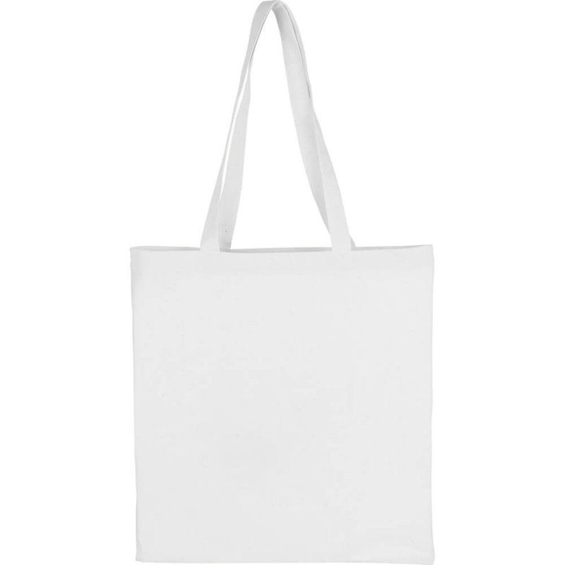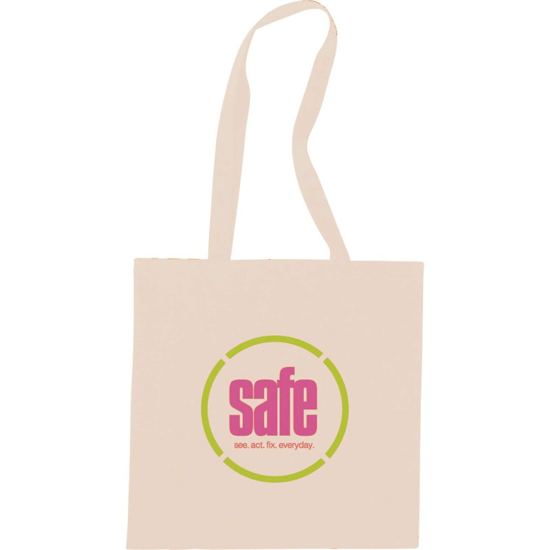 Reusable tote bag with a gusset which is manufactured from 130gsm cotton.