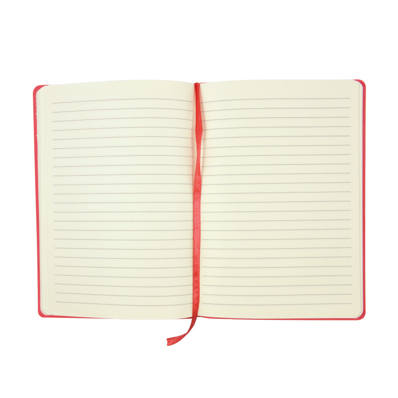 PU bound cover notebook with bookmark, elastic closure and expandable inner pocket. 96 leaves, 192 lined cream pages (70GSM).