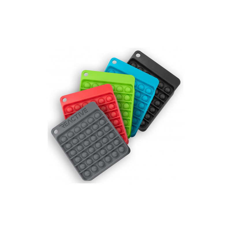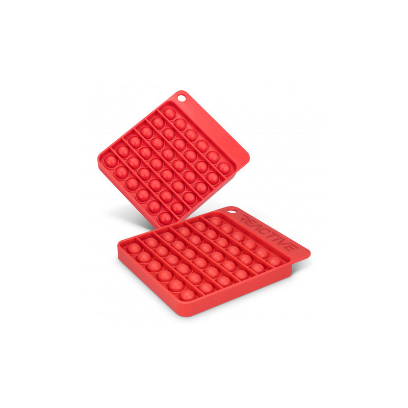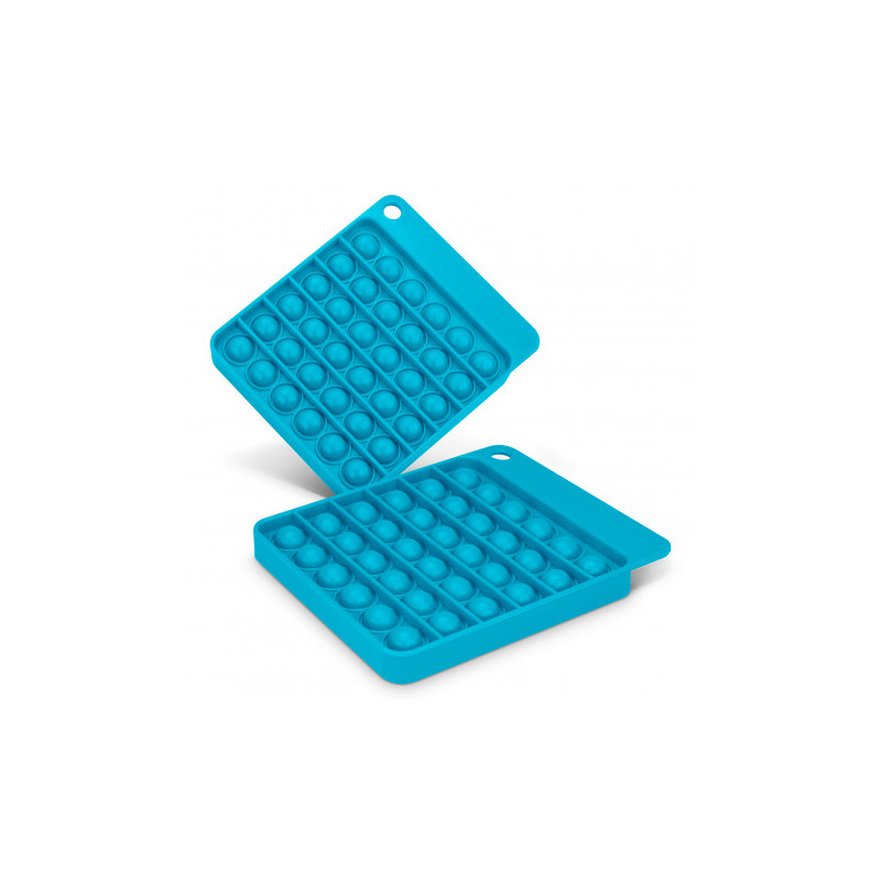Sensory fidget popper board that provides a therapeutic popping experience, reducing stress and anxiety. The board has a prominent area for branding and is supplied in a kraft box. This product is not suitable for children under the age of three.