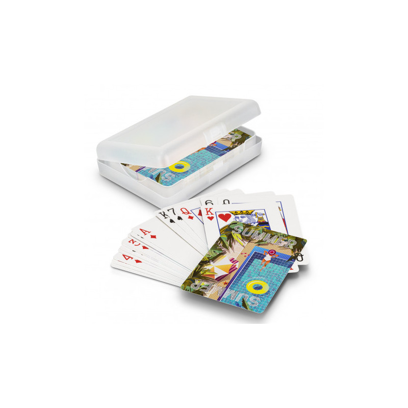 Durable paper playing cards manufactured from 300GSM paper with a cardboard case. A production lead time of 25 working days applies to this product.