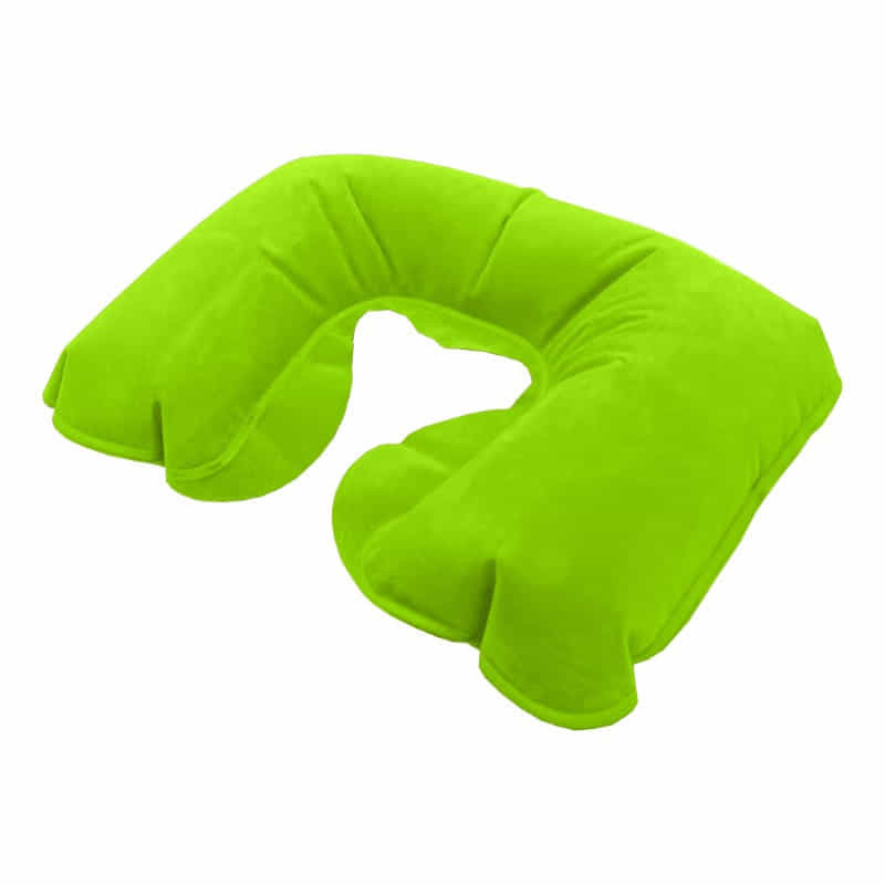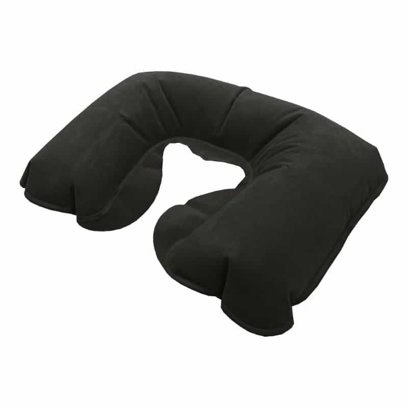 Inflatable neck pillow with a comfortable soft-touch velvet finish. It laser engraves to a matt brown colour.