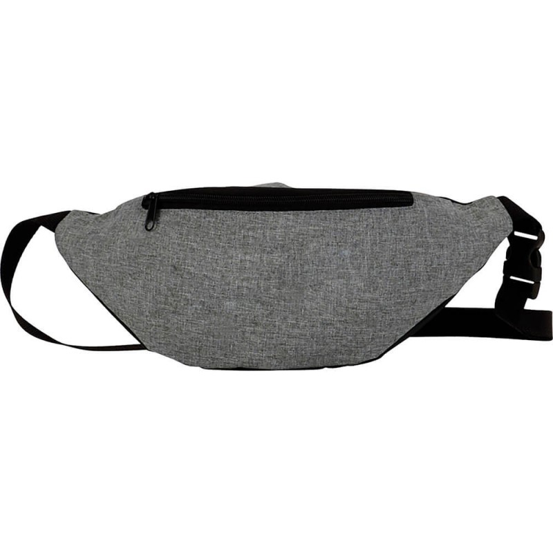 Versatile travel bag which is ideal for holding passports and important items while travelling or at events. It is manufactured from 300D polyester with an on-trend heather style finish and a black zippered closure. Byron has a zippered internal pocket and an adjustable woven waist strap with a secure snap-lock closure.