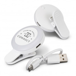 Compact, clip on ultra white LED phone light to enhance lighting conditions for selfies. There are 3 selectable brightness settings plus on/off. The light has a rechargeable lithium battery. Packed in a white gift box. Supplied with a micro USB charging cable to charge from a USB port or mains adaptor.
