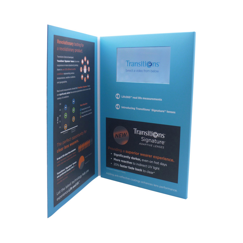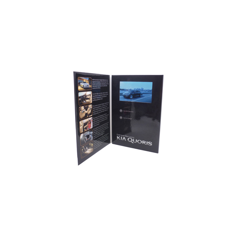 Utilising Hall Effect sensors the pre-loaded video presentation will auto play when this catalogue is opened. Offering a full colour print in matt or gloss finish this catalogue includes; a 4.3 inch LCD panel with 480 X 272 pixel resolution, 128MB capacity for a 12 min play time and rechargeable battery 650 mAh with 1 hour capacity. USB charge cable...
