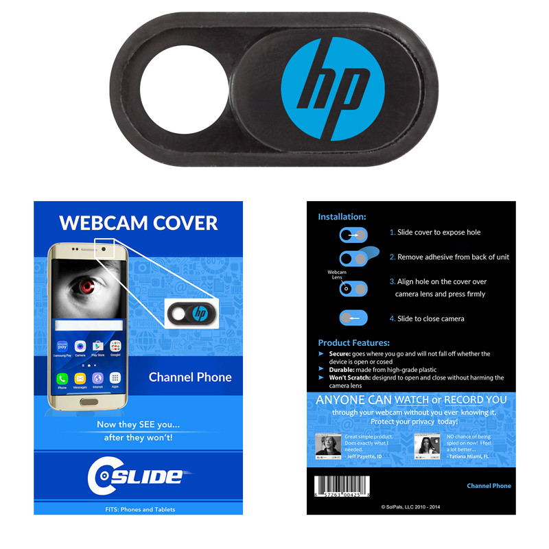WebCam Cover Tablet provides the ultimate privacy protection against Webcam hackers while offering a high impression branding area. It is tiny, it slides and is specifically for tablets. Simply peel off the rear liner to expose the 3M double-sided adhesive that works specifically with tablets. Includes instruction backing card included. Material: ABS...