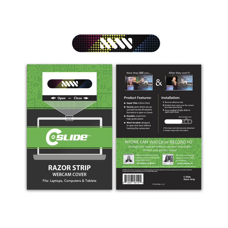 WebCam Cover Channel Tablet provides the ultimate privacy protection against Webcam hackers while offering a high impression branding area. It is tiny, it slides and is specifically for smart phones. Simply peel off the rear liner to expose the 3M double-sided adhesive that works specifically with phones. Includes instruction backing card included....