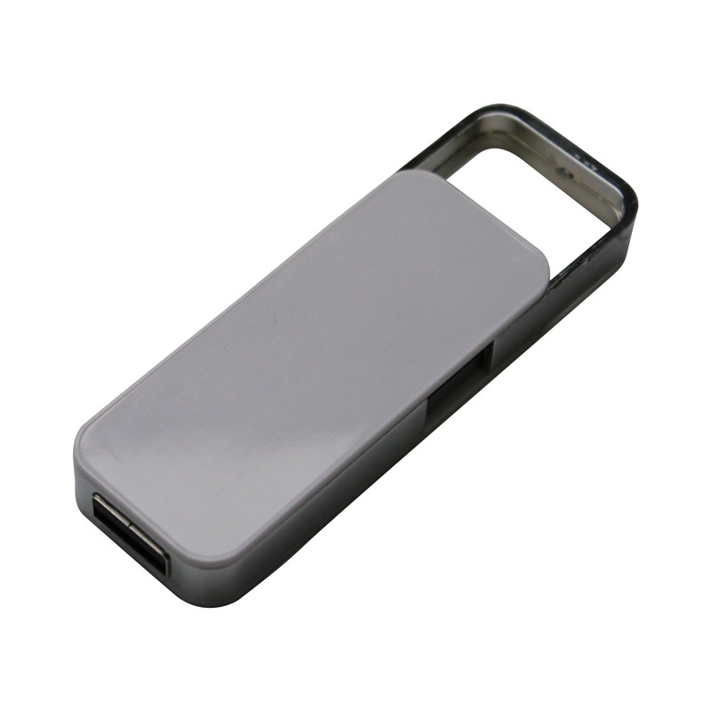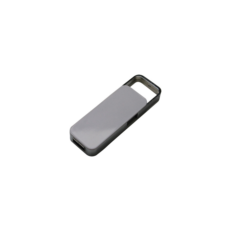 Smart key ring with a robust metal and plastic case. It has a retractable 4GB flash drive with a USB 2.0 interface. Data uploading is available on request and it laser engraves to a natural etch.
