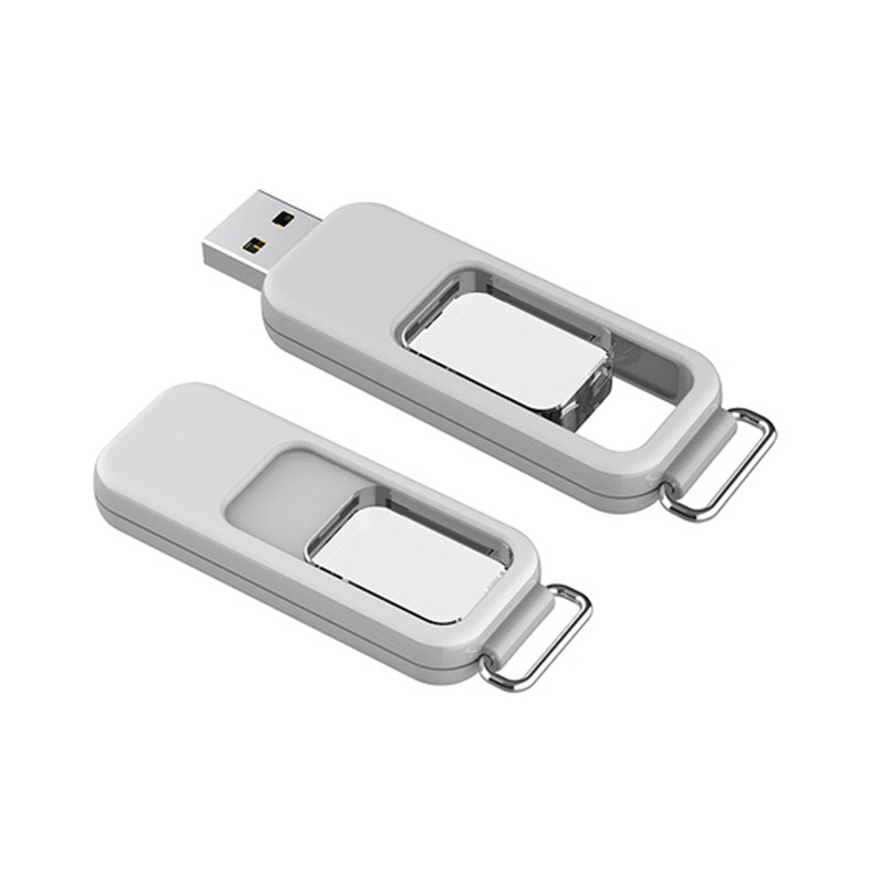 Smart key ring with a robust metal and plastic case. It has a retractable 4GB flash drive with a USB 2.0 interface. Data uploading is available on request and it laser engraves to a natural etch.
