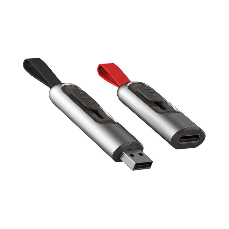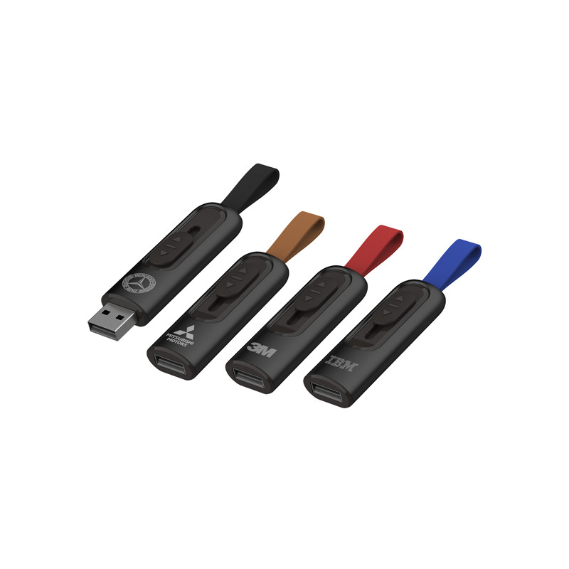 Smart key ring with a robust metal and plastic case. It has a retractable 4GB flash drive with a USB 2.0 interface. Data uploading is available on request and it laser engraves to a natural etch.