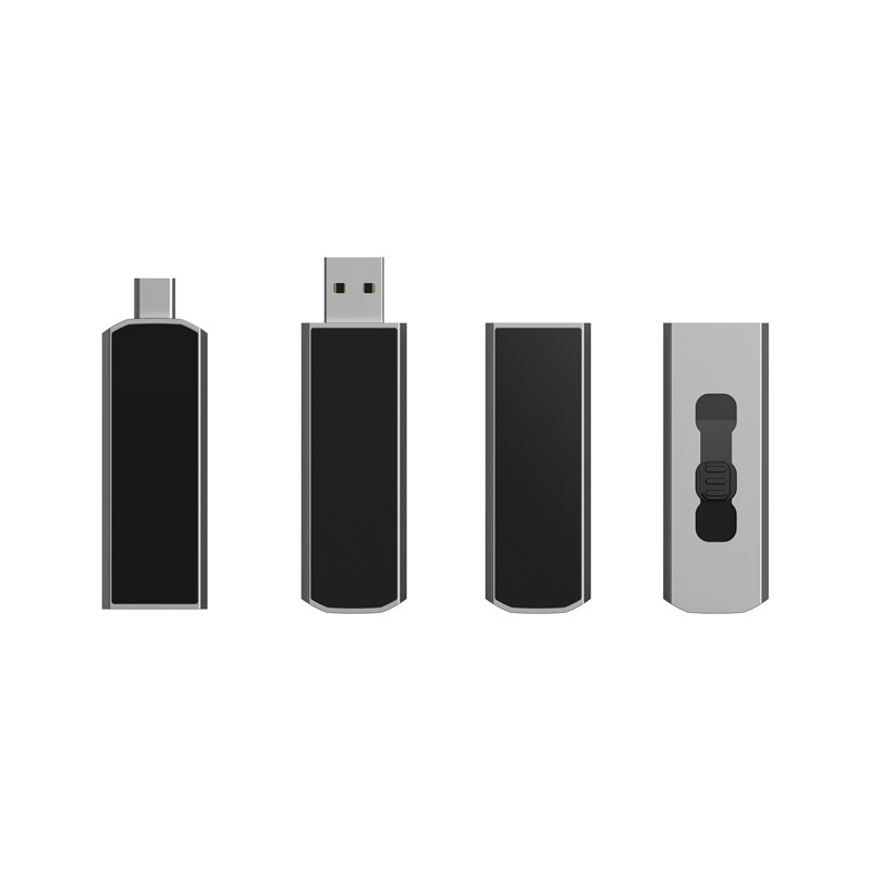 Smart key ring with a robust metal and plastic case. It has a retractable 4GB flash drive with a USB 2.0 interface. Data uploading is available on request and it laser engraves to a natural etch.