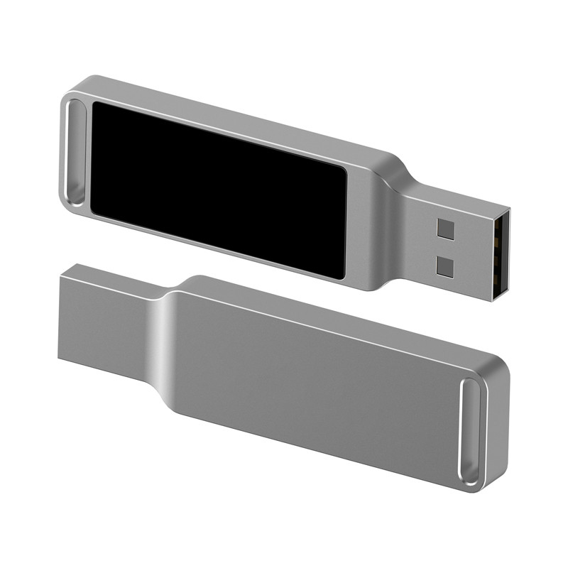 Smart key ring with a robust metal and plastic case. It has a retractable 4GB flash drive with a USB 2.0 interface. Data uploading is available on request and it laser engraves to a natural etch.