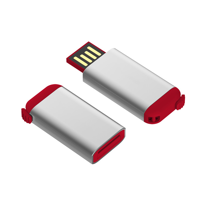 Smart key ring with a robust metal and plastic case. It has a retractable 4GB flash drive with a USB 2.0 interface. Data uploading is available on request and it laser engraves to a natural etch.
