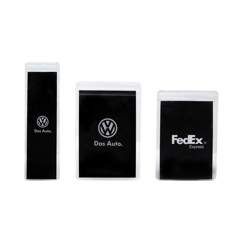 Welded PVC pouch with press lock closure. Fully customised double sided matte finished card can be inserted with the product. Material: PVC