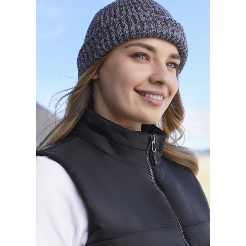 Ladies wind and water repellent softshell vest. Two side pockets with zips.|Tailored fit.|Adjustable drawstring at hem. |3 layer bonded fabric, 100% polyester, microfleece & elastic polyester with PU laminate.|Also available in the matching Mens Montana Vest