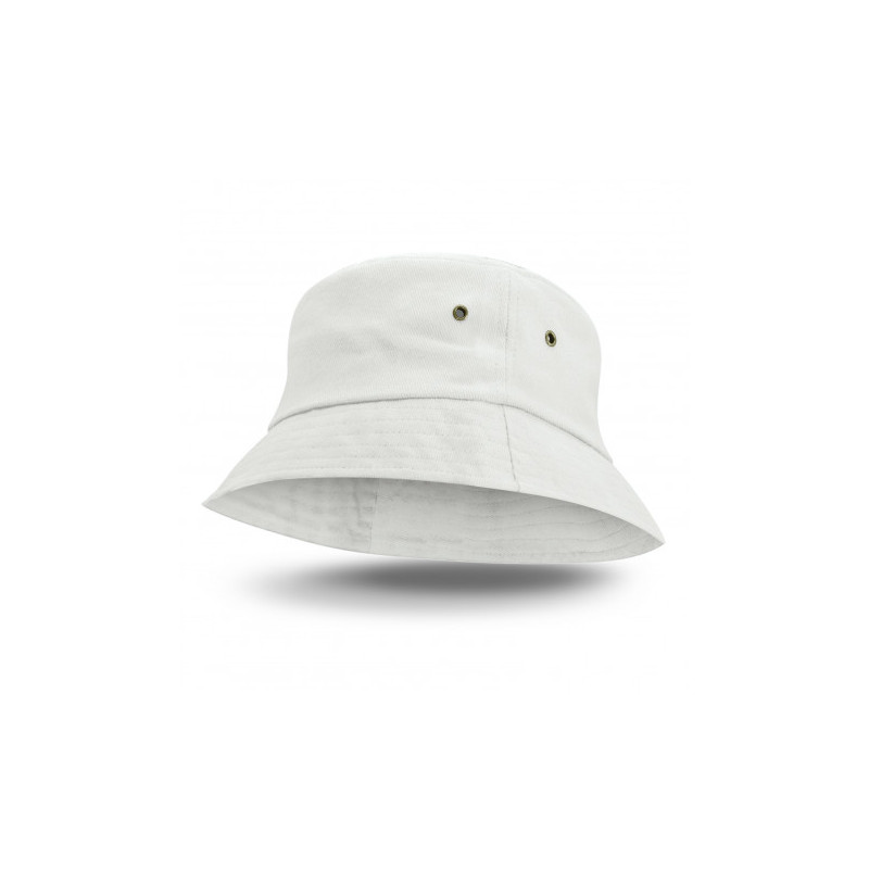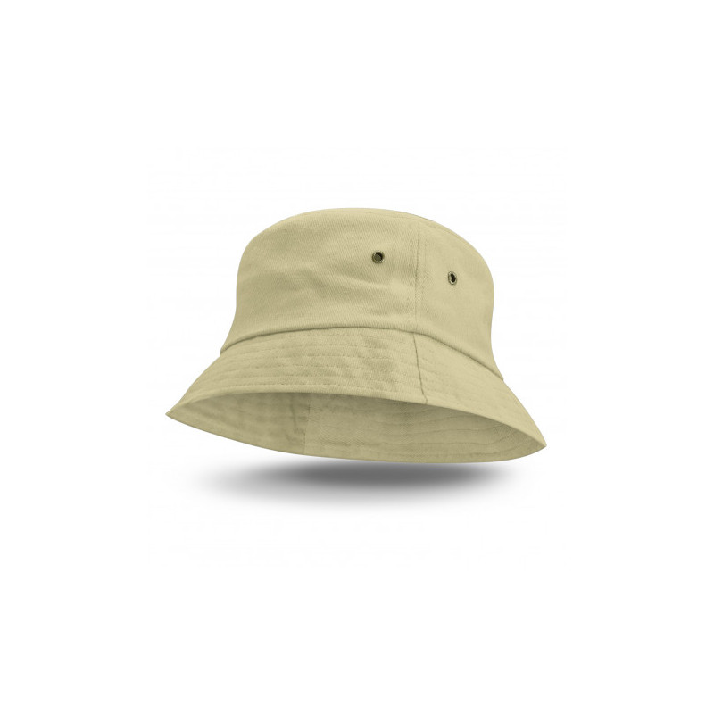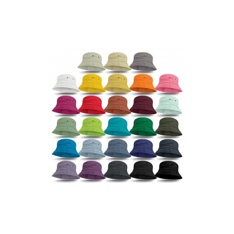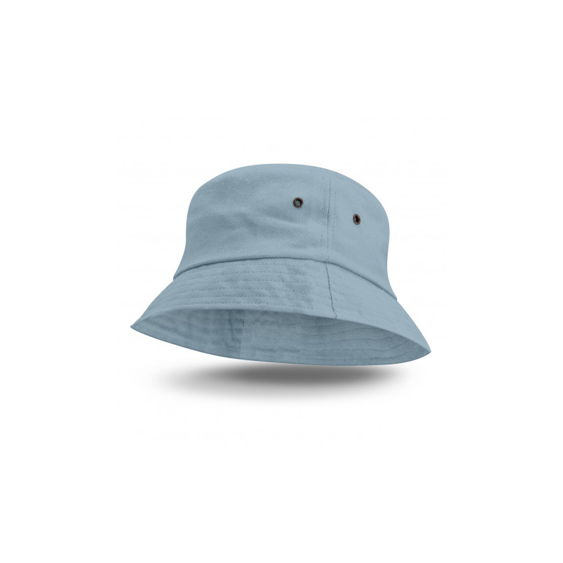 Premium bucket hat which is manufactured from fashionable faded heavy brushed cotton with a sweat band and gunmetal eyelets. It is available in two sizes which will fit most people including kids.