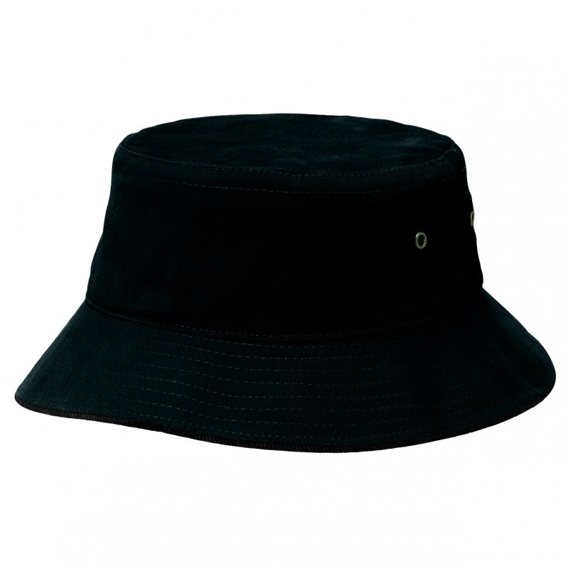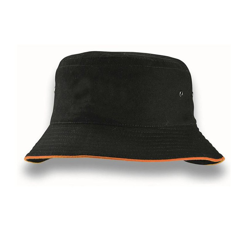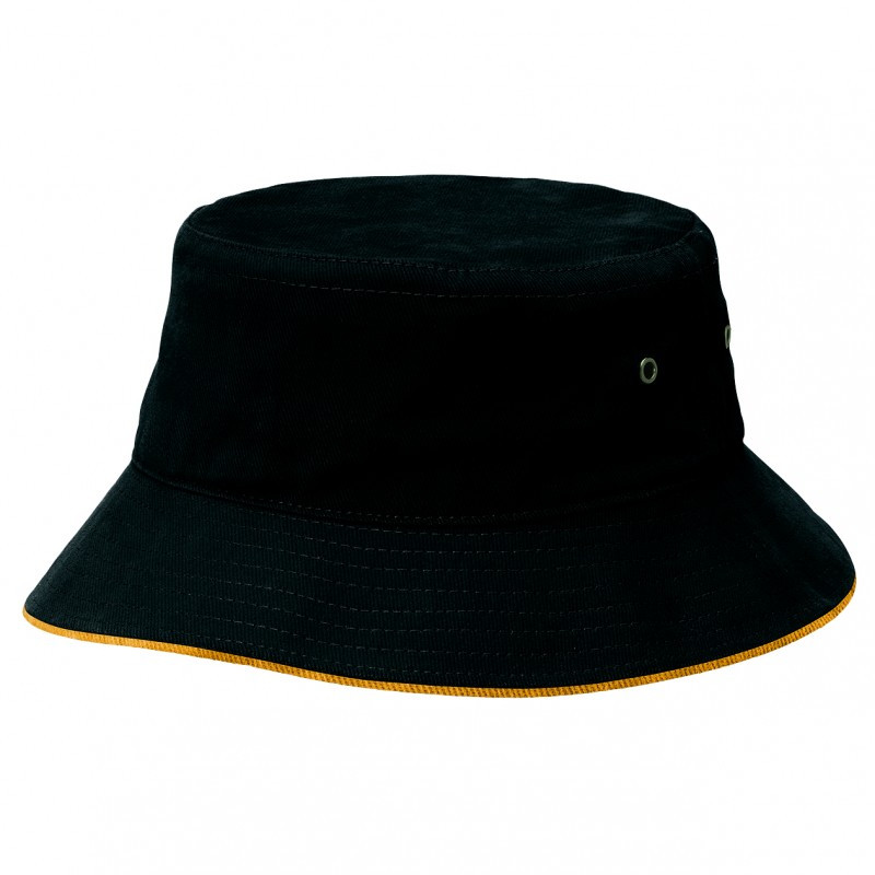 Premium black heavy brushed cotton bucket hat with stylish coloured sandwich trim around the base. It has a sweat band and is available in three sizes.