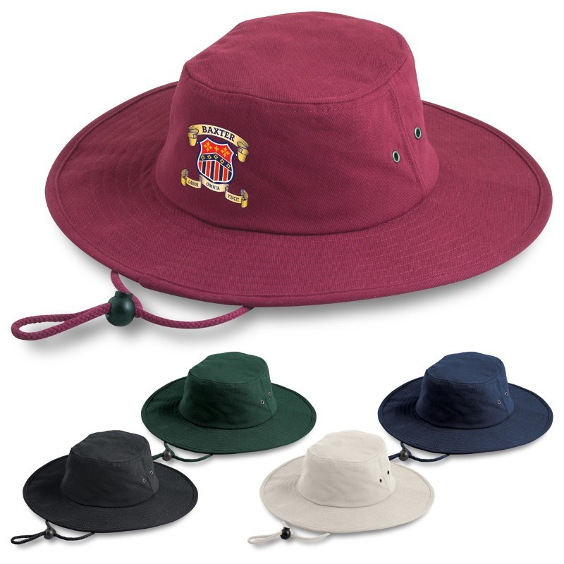 No slouching in this hat – smart, tough and meets all Australian standards for sun protection. Available in 53cm, 55cm, 57cm, 59cm and 61cm sizes. 65% Polyester / 35% Viscose|Cord with slide toggle|Metal eyelets|Padded cotton sweatband|Meets Australian Standards AS/NZS 4399|UV protection information label attached|UPF rating 50+ “Excellent Protection