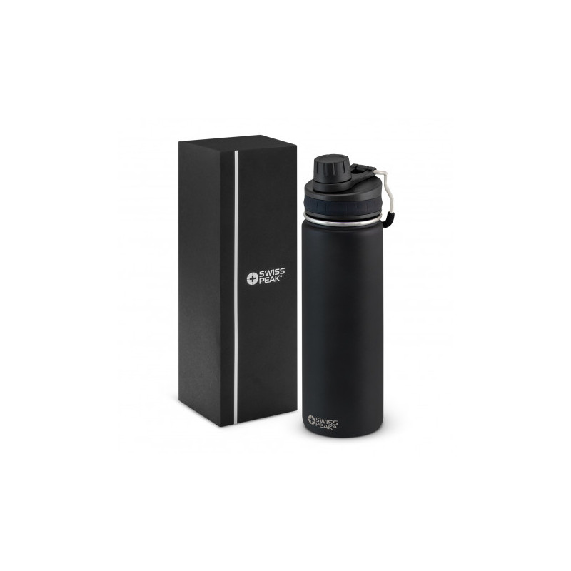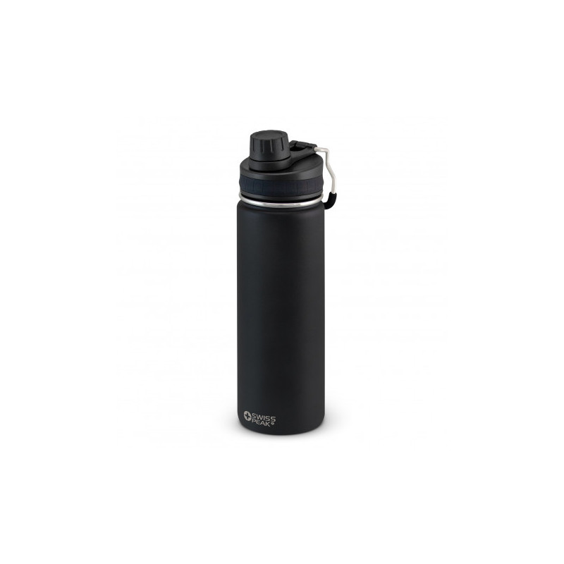 Stylish Swiss Peak 750ml double wall, vacuum insulated stainless steel drink bottle with a smart powder coated finish. It has a secure screw-on lid with a carry handle and a flip-out drinking valve. The valve has a removable silicone mouthpiece for easy cleaning. This precision bottle is BPA-free, and laser engraves to a shiny steel finish. It is...