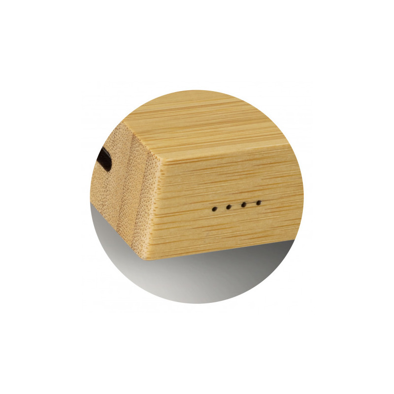 Wireless 5W phone charger with a sleek natural bamboo finish. It will charge devices that are enabled for wireless charging and will work with most modern phones. Simply plug it into any USB port or a mains adapter and place a compatible device on it for convenient wireless charging. The charger is presented in a kraft gift box with a Micro-B USB cable...