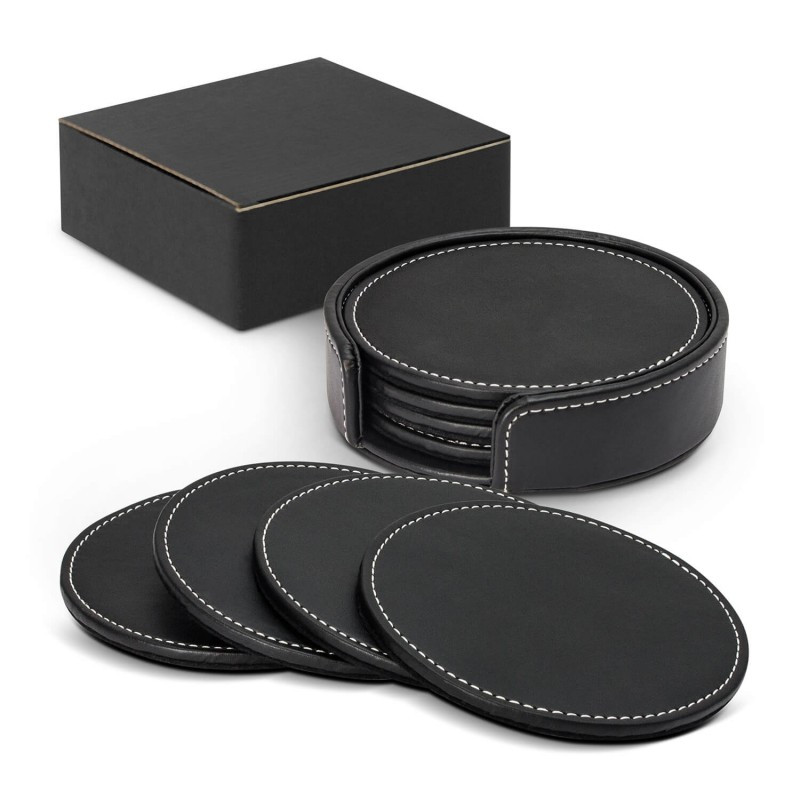 At our company, we offer a range of conference merchandise and products, including the Brooklyn Coaster Set. The minimum order quantities (MOQs) vary depending on the product and how it's decorated—whether printed or otherwise.