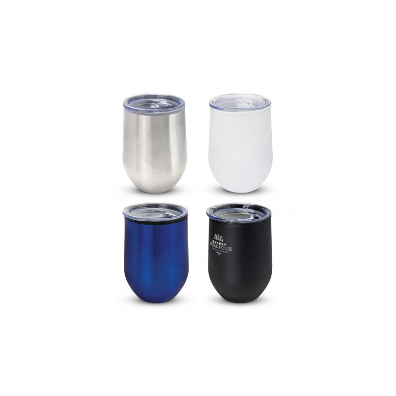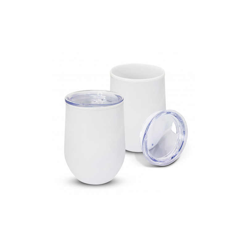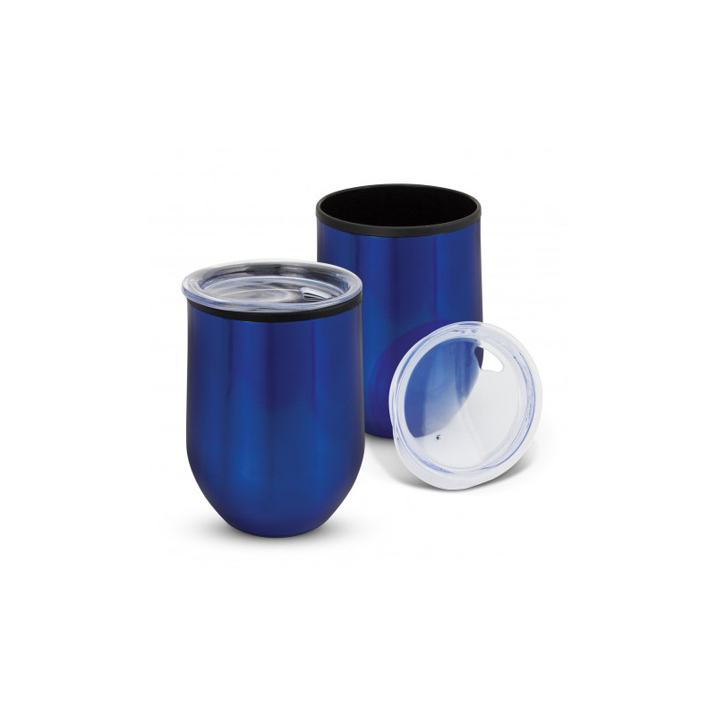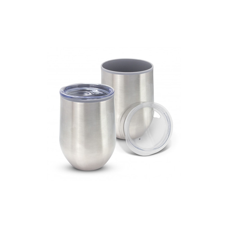 Premium 360ml double wall, vacuum insulated stainless steel coffee cup that will keep drinks hot or cold for hours. It has a transparent push-on, slider lid. Evora is BPA-free, laser engraves to a shiny steel finish and an optional black gift box is available on request. This product is not dishwasher safe and handwashing is recommended.