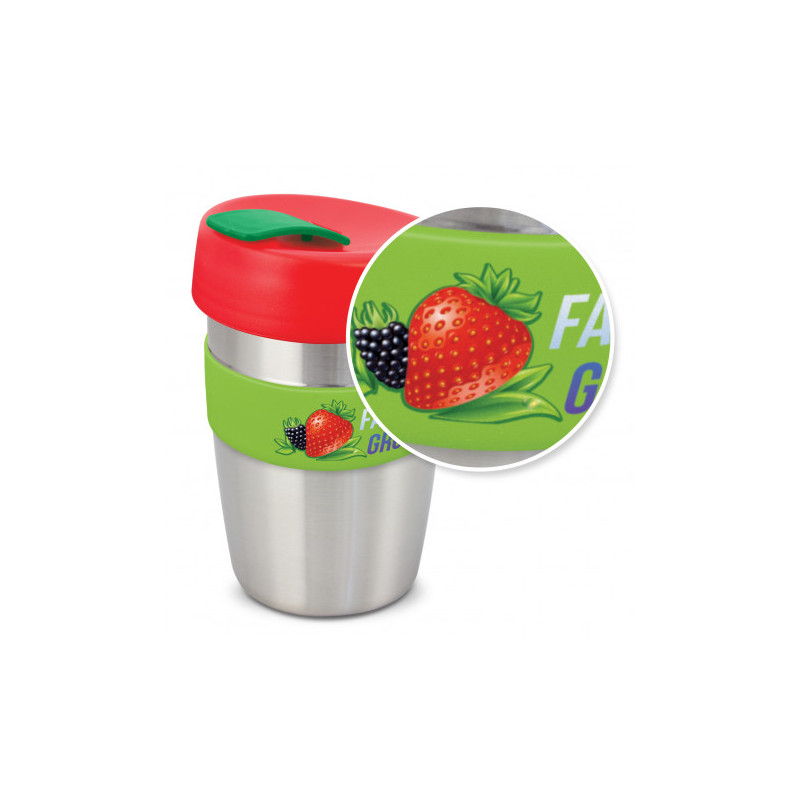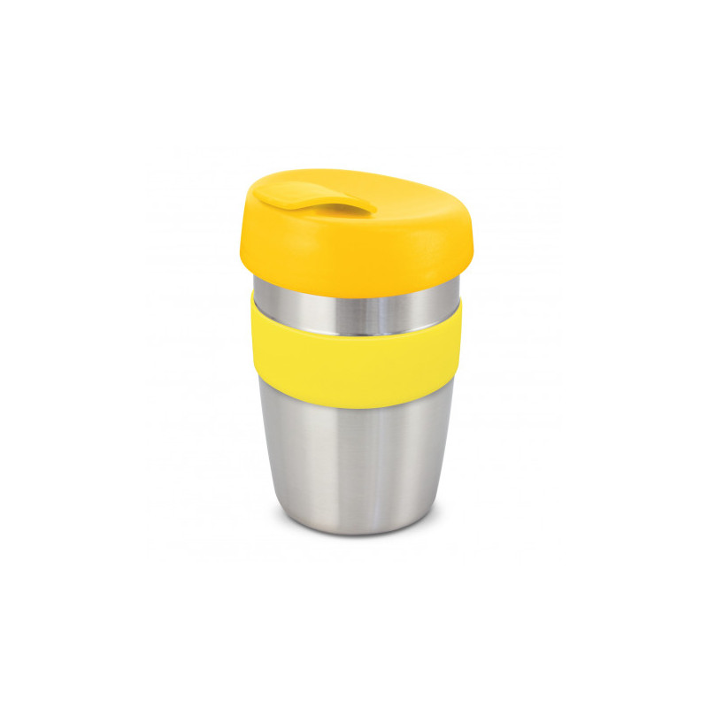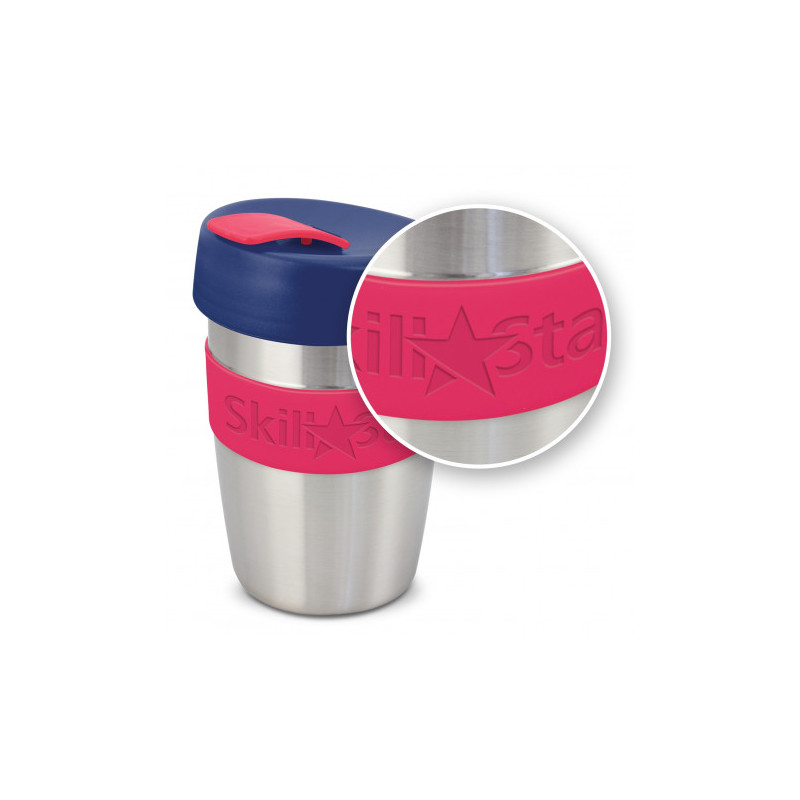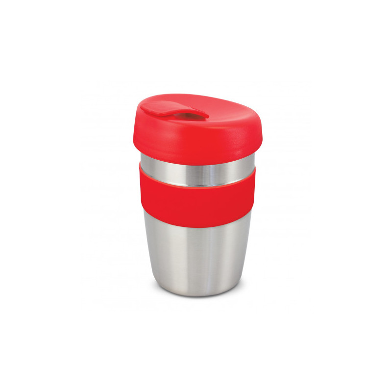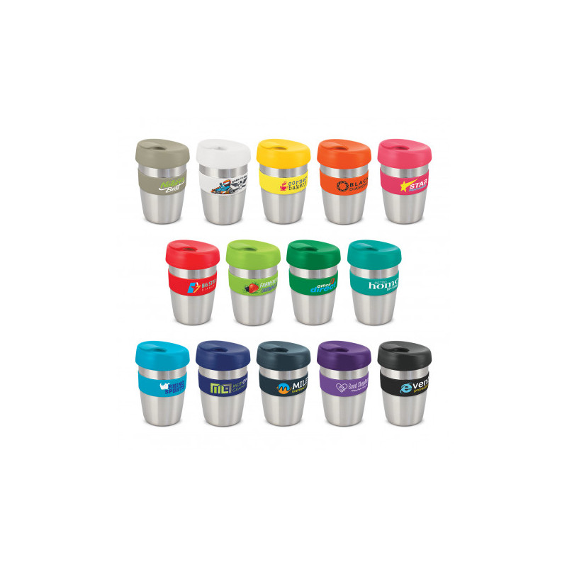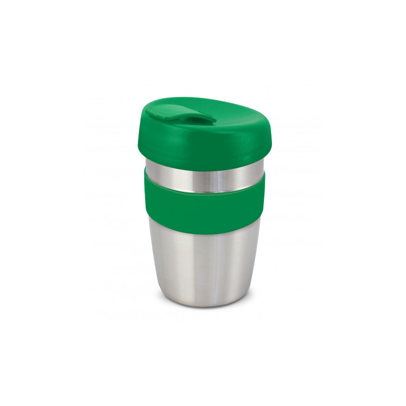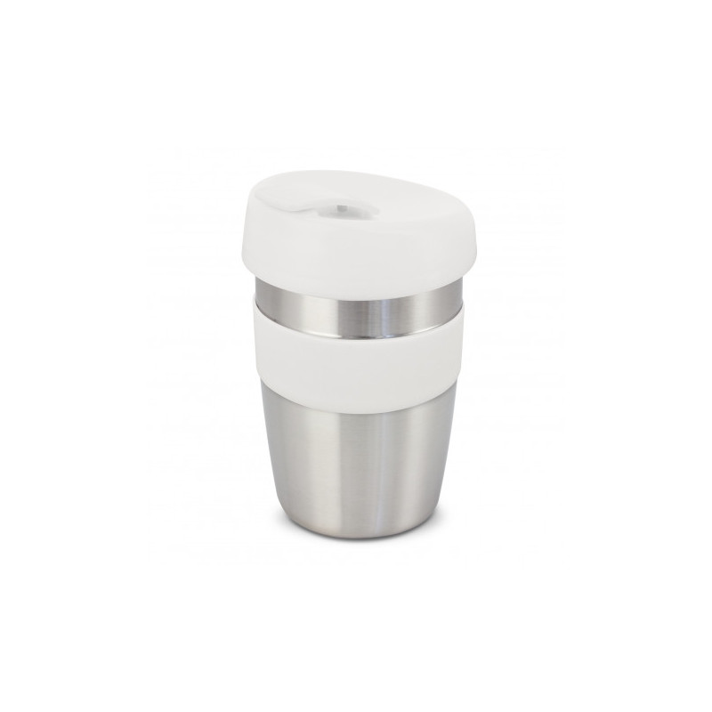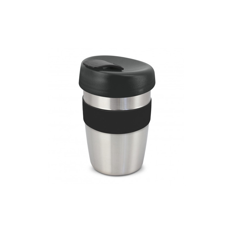 Premium 360ml double wall, vacuum insulated stainless steel coffee cup that will keep drinks hot or cold for hours. It has a transparent push-on, slider lid. Evora is BPA-free, laser engraves to a shiny steel finish and an optional black gift box is available on request. This product is not dishwasher safe and handwashing is recommended.