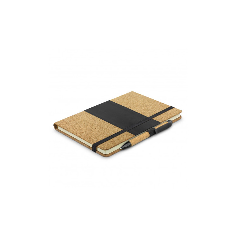 A large-size notebook that has a hardcover with a smart PU finish. It has 96 sheets (192 pages) of 70gsm lined paper, a bookmark ribbon, an elastic closure band and an elastic pen loop.