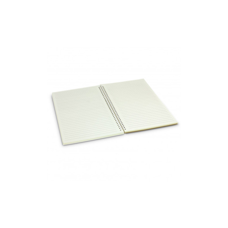 A large-size notebook that has a hardcover with a smart PU finish. It has 96 sheets (192 pages) of 70gsm lined paper, a bookmark ribbon, an elastic closure band and an elastic pen loop.