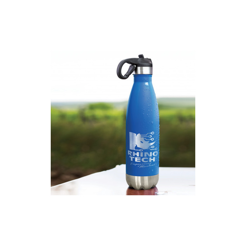 Stylish Swiss Peak 750ml double wall, vacuum insulated stainless steel drink bottle with a smart powder coated finish. It has a secure screw-on lid with a carry handle and a flip-out drinking valve. The valve has a removable silicone mouthpiece for easy cleaning. This precision bottle is BPA-free, and laser engraves to a shiny steel finish. It is...