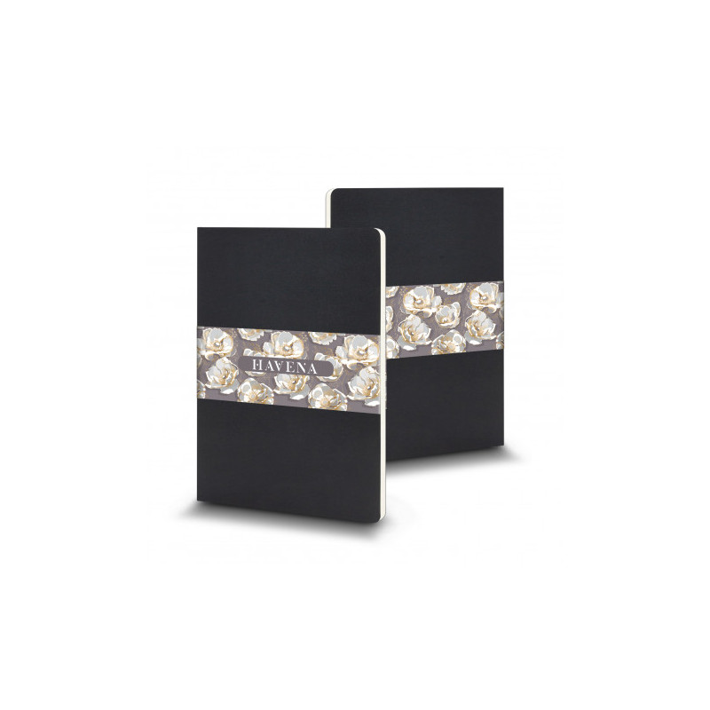 A large-size notebook that has a hardcover with a smart PU finish. It has 96 sheets (192 pages) of 70gsm lined paper, a bookmark ribbon, an elastic closure band and an elastic pen loop.