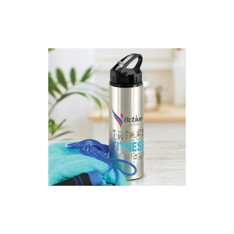 Stylish Swiss Peak 750ml double wall, vacuum insulated stainless steel drink bottle with a smart powder coated finish. It has a secure screw-on lid with a carry handle and a flip-out drinking valve. The valve has a removable silicone mouthpiece for easy cleaning. This precision bottle is BPA-free, and laser engraves to a shiny steel finish. It is...